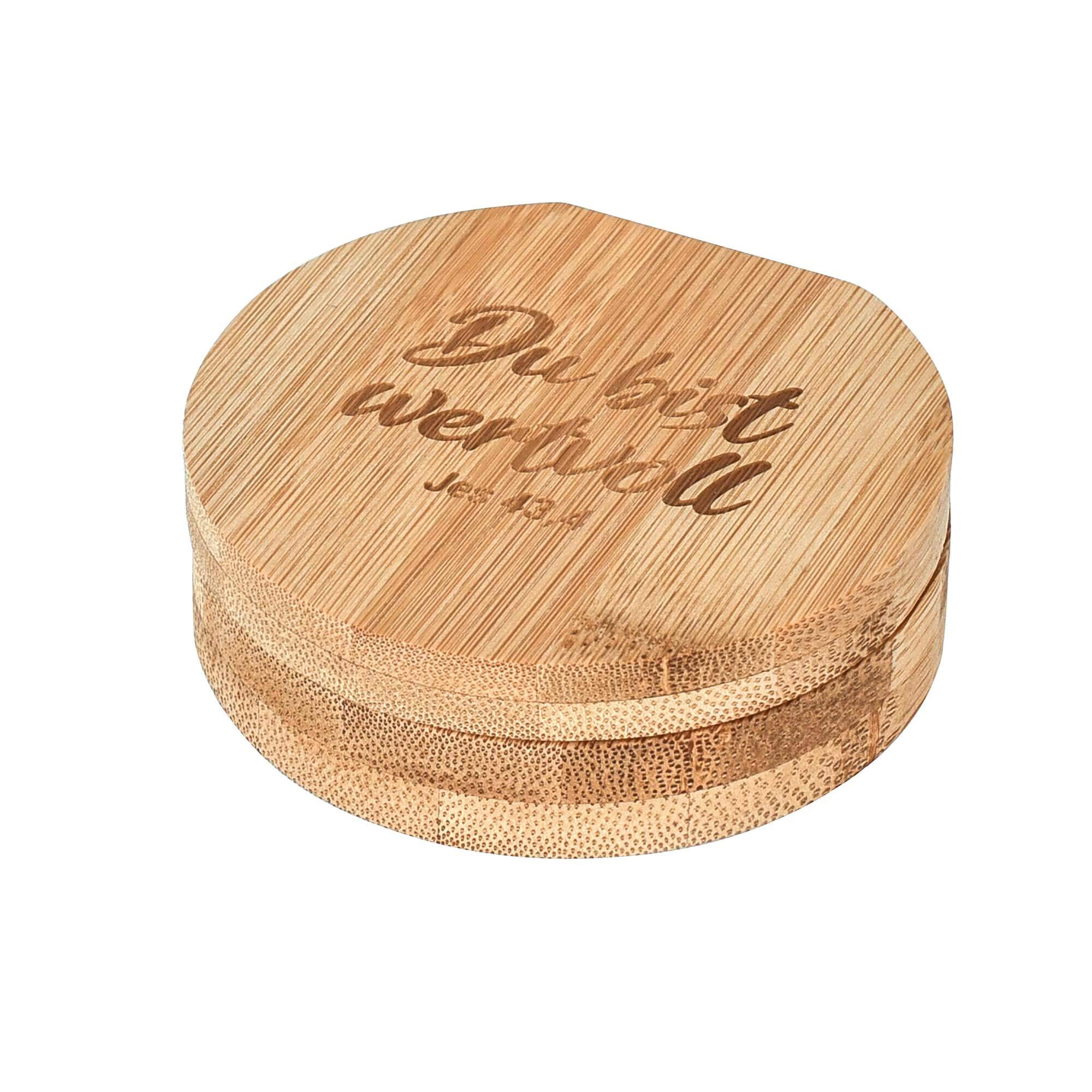 Du bist wertvoll - Schmuckdose aus Bambus mit Spiegel