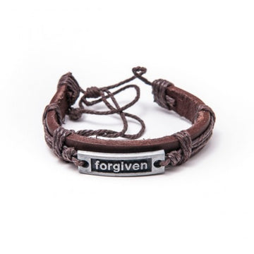 Leder-Armband mit Metallplatte "Forgiven"