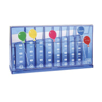 In der farbenfrohen Spardose sind Euro-Münzen nicht nur sicher untergebracht, sondern lassen sich auch sortieren und zählen. Einmal Geld eingeworfen, rollen die Münzen automatisch in das richtige Fach. Für bis zu 118,20 Euro ist in der Dose Platz. Welcher Münzwert sich in dem Geldsortierer befindet, lässt sich so auf den ersten Blick ablesen. In die abschließbare Spardose passen auch Scheine hinein. Dazu verfügt diese über ein kleines Fach für 5 bzw. 10-Scheine am Rand.