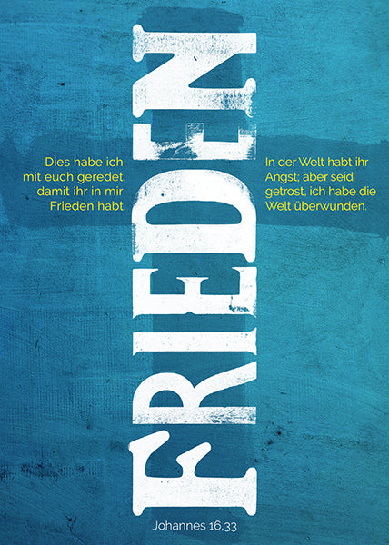 Dies habe ich mit euch geredet, damit ihr in mir Frieden habt. In der Welt habt ihr Angst; aber seid getrost, ich habe die Welt überwunden.