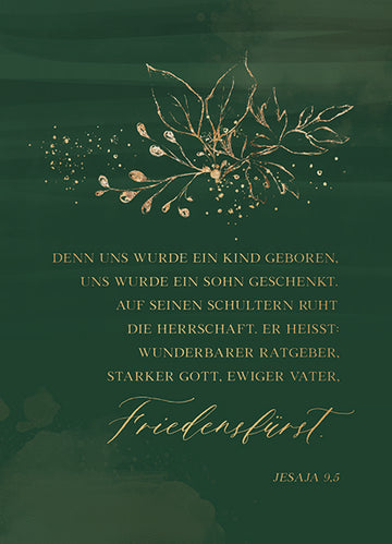 Denn uns wurde ein Kind geboren, uns wurde ein Sohn geschenkt. Auf seinen Schultern ruht die Herrschaft. Er heißt: wunderbarer Ratgeber, starker Gott, ewiger Vater, Friedensfürst.