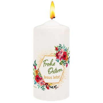 Diese liebevoll gestaltete Osterkerze mit der Zusage "Frohe Ostern - Jesus lebt!" ist ein dekoratives und aussagestarkes Geschenk zu Ostern, aber auch eine schöne Dekoration für Ihr eigenes Zuhause.
