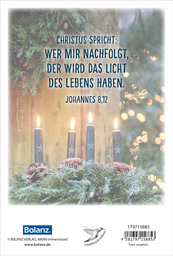 Mit Bibelvers auf der Rückseite Johannes 8,12:
