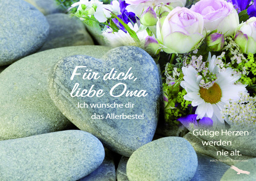 Für dich, liebe Oma. Ich wünsche dir das Allerbeste! Gütige Herzen werden nie alt