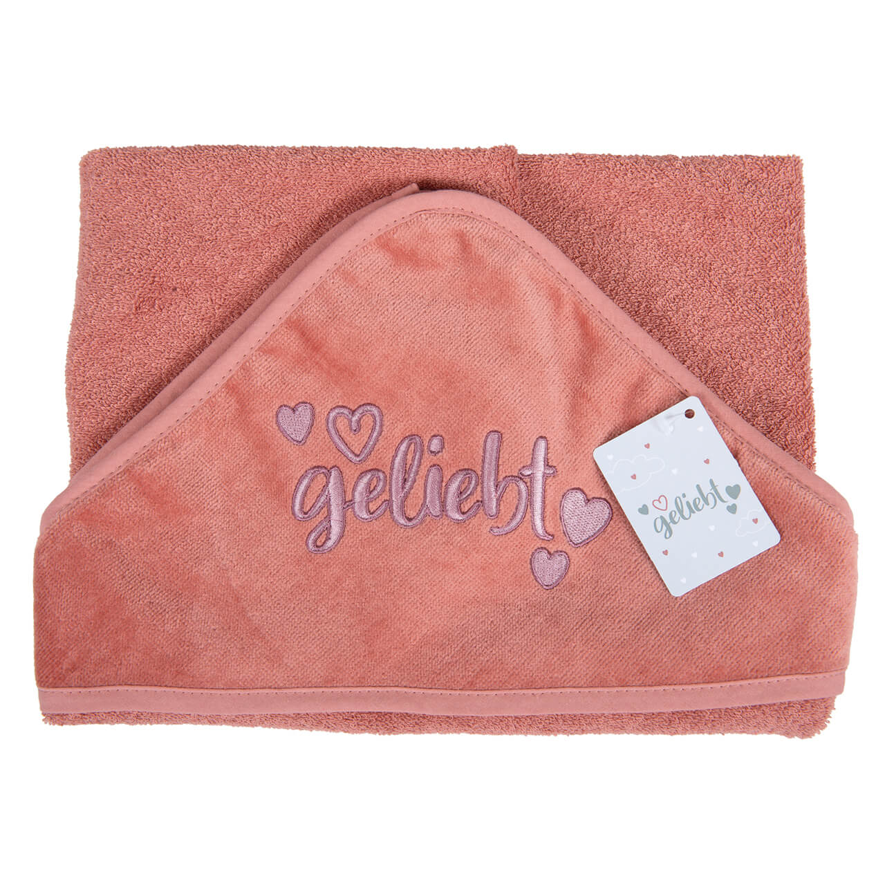 Das Baby-Badetuch in der Trendfarbe Altrosa ist niedlich bestickt mit "geliebt" und kleinen Herzen. Es hat eine praktische Kapuze, die nach dem Badespaß vor Zugluft schützt. Nach dem Baden ist dieses Frotteetuch mit seiner samtigen Velours-Oberfläche einfach herrlich zum Einkuscheln und Wohlfühlen!