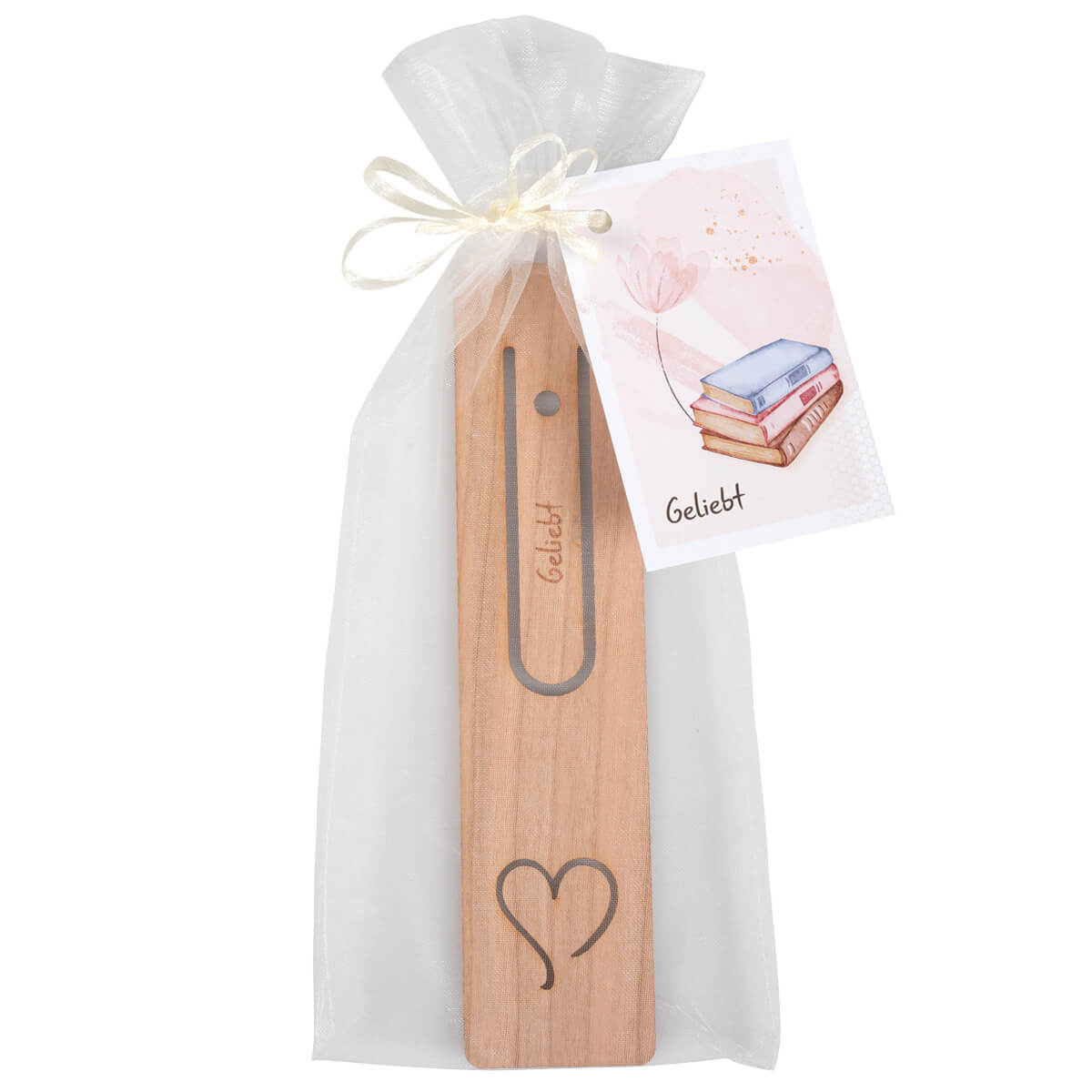 Das Lesezeichen wird zusammen mit einem passenden Kärtchen geschenkfertig verpackt im Organzabeutel geliefert.