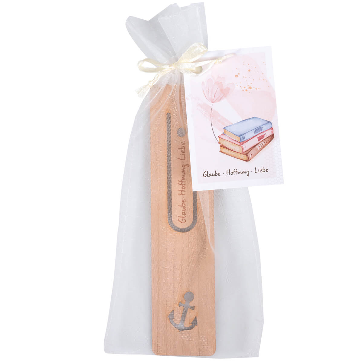 Glaube. Hoffnung. Liebe - Lesezeichen Anker (Holz)