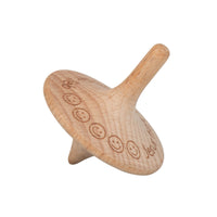 Der Holz-Kreisel dreht sich schön lange und ist mit Lasergravur "Jesus hat alle Kinder lieb" und lustigen Smileys veredelt.