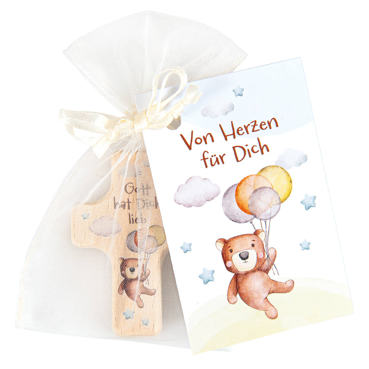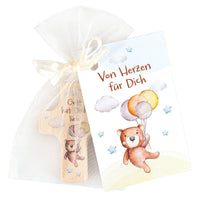 Mit kindgerechtem Bärenmotiv und Text: