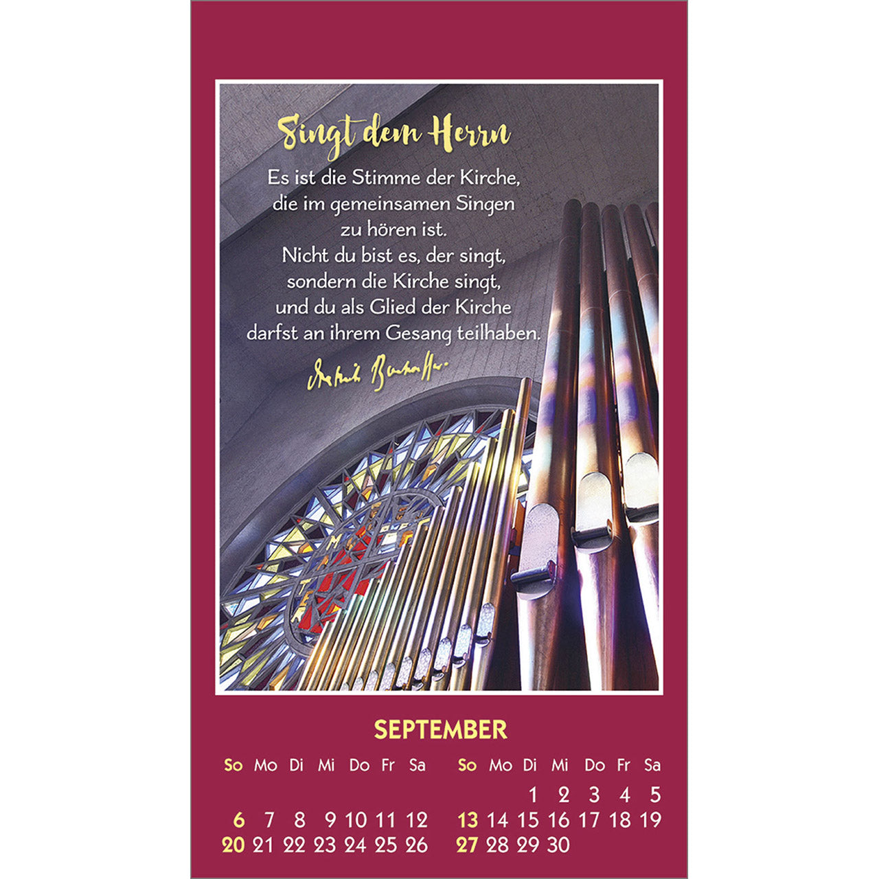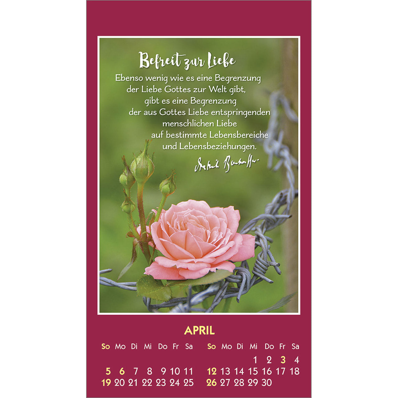Ein hochwertiger Aufkleber-Kalender mit prägnanten Texten von Dietrich Bonhoeffer und symbolstarken Farbfotos.