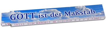 2 m-Maß aus Buchenholz, mit farbigem Aufdruck "Gott ist der Maßstab"