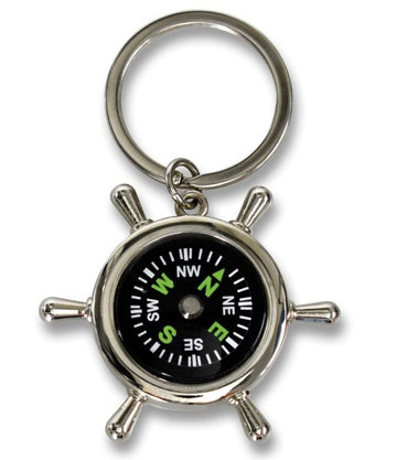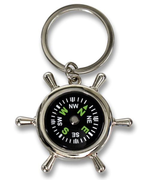 Schlüsselanhänger "Steuerrad" aus Metall, inklusive Kompass und rückseitiger Textgravur: