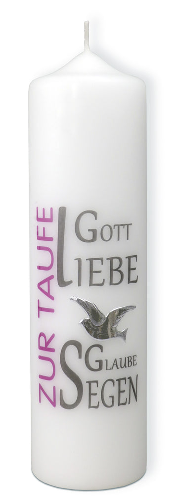 Gott, Liebe, Glaube, Segen - Taufkerze (pink)