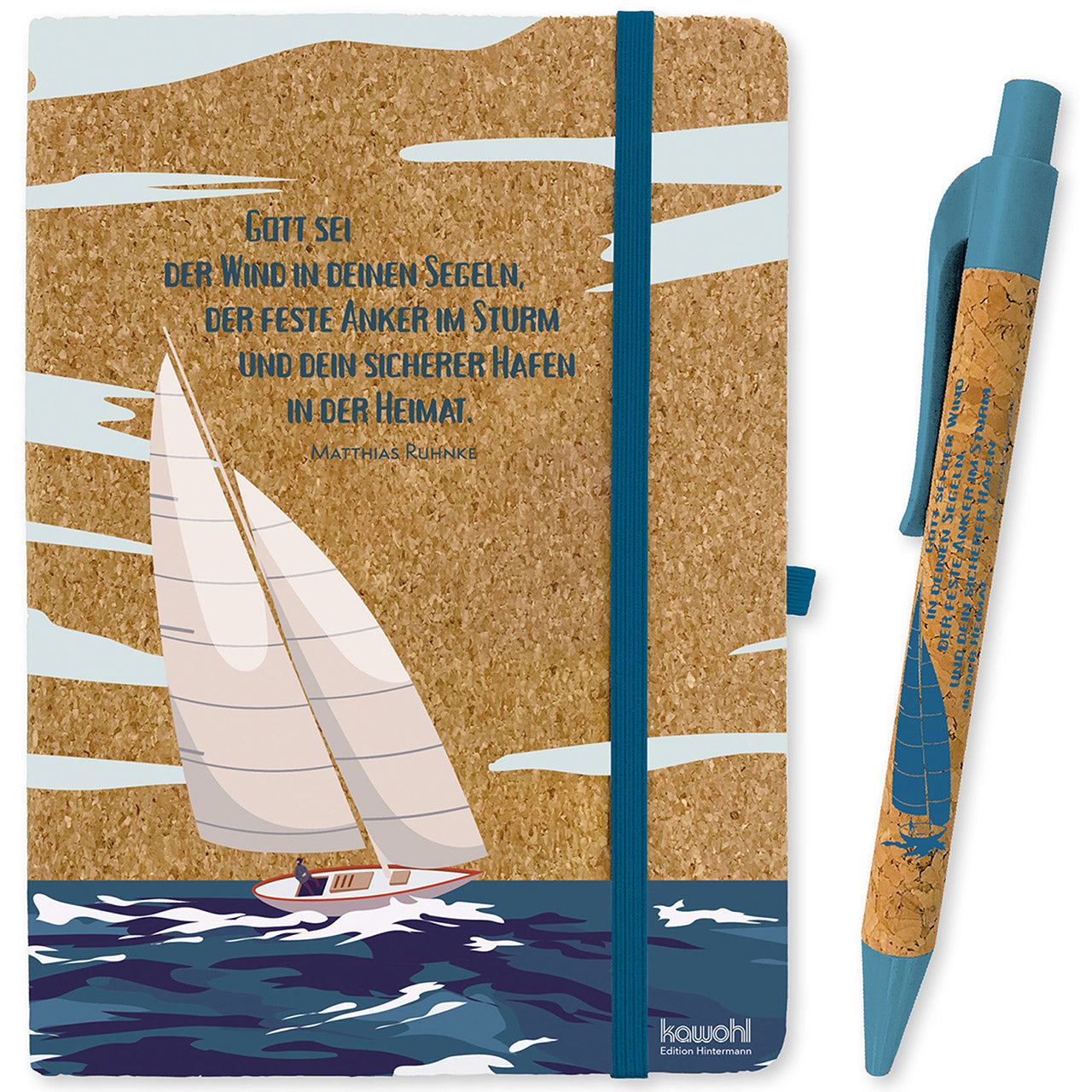 Gott sei der Wind in deinen Segeln - Kork-Schreibset (Notizbuch & Kugelschreibe)