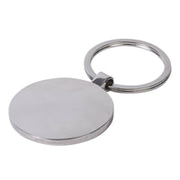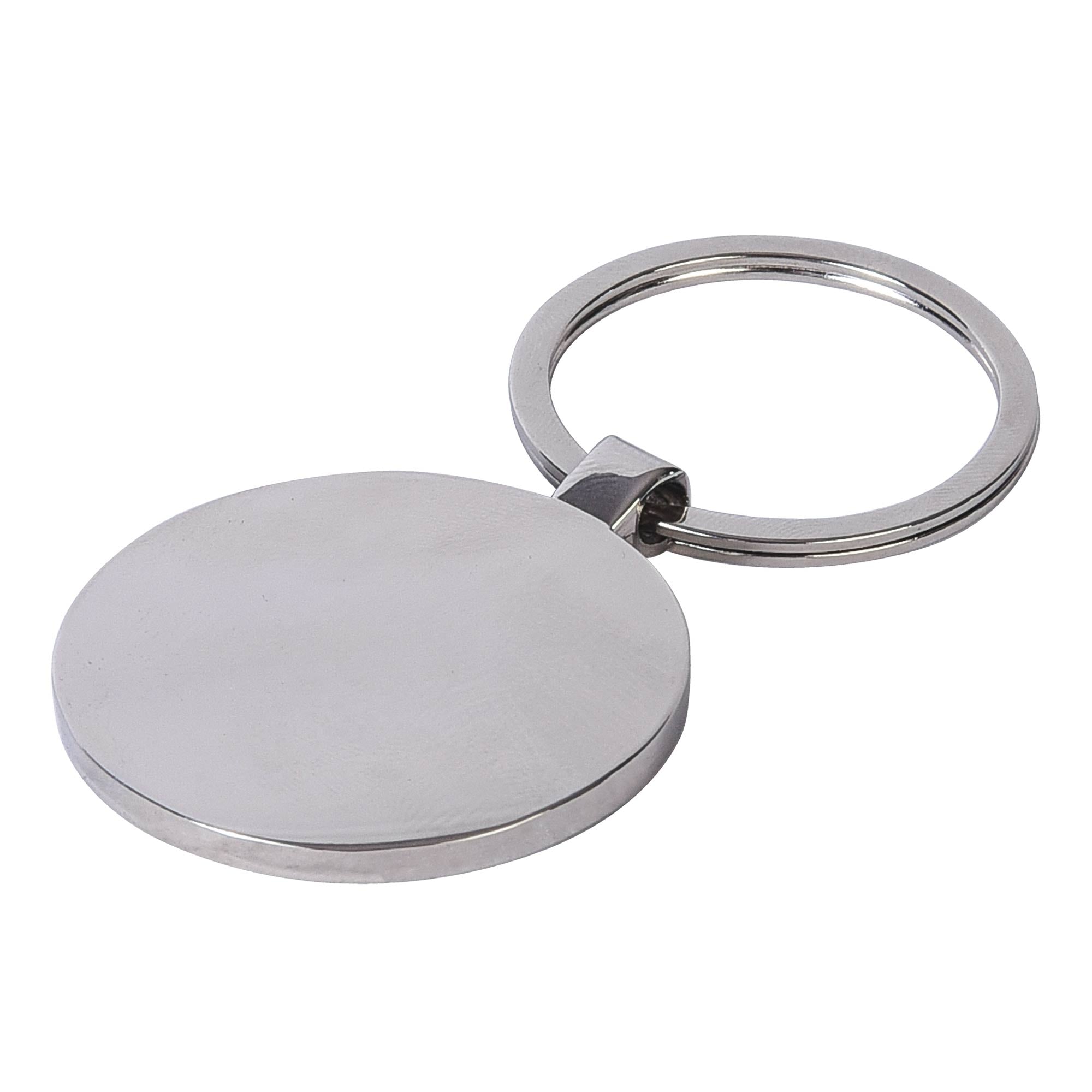 Eleganter Schlüsselanhänger aus hochglänzendem Metall in Form eines Kreises mit Holz-Inlay an stabilem Metall-Schlüsselring. Gesamtlänge: 4,8 cm,