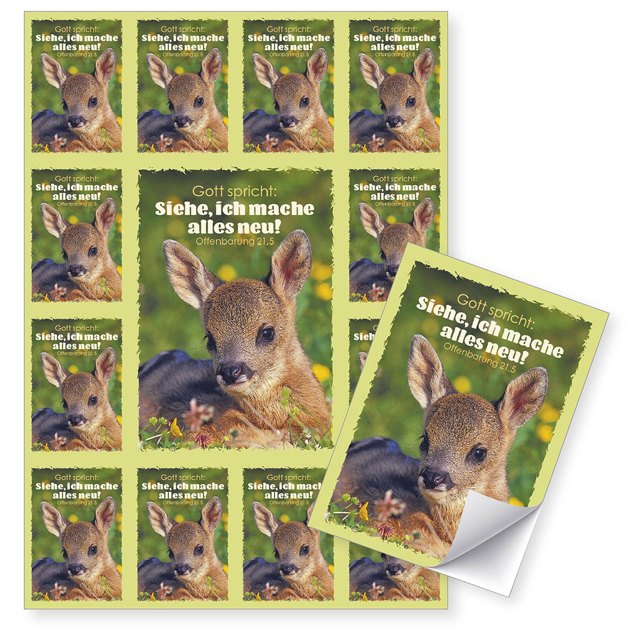 Gott spricht: Siehe, ich mache alles neu - Tier-Motiv (12 Aufkleber-Grußkarten)