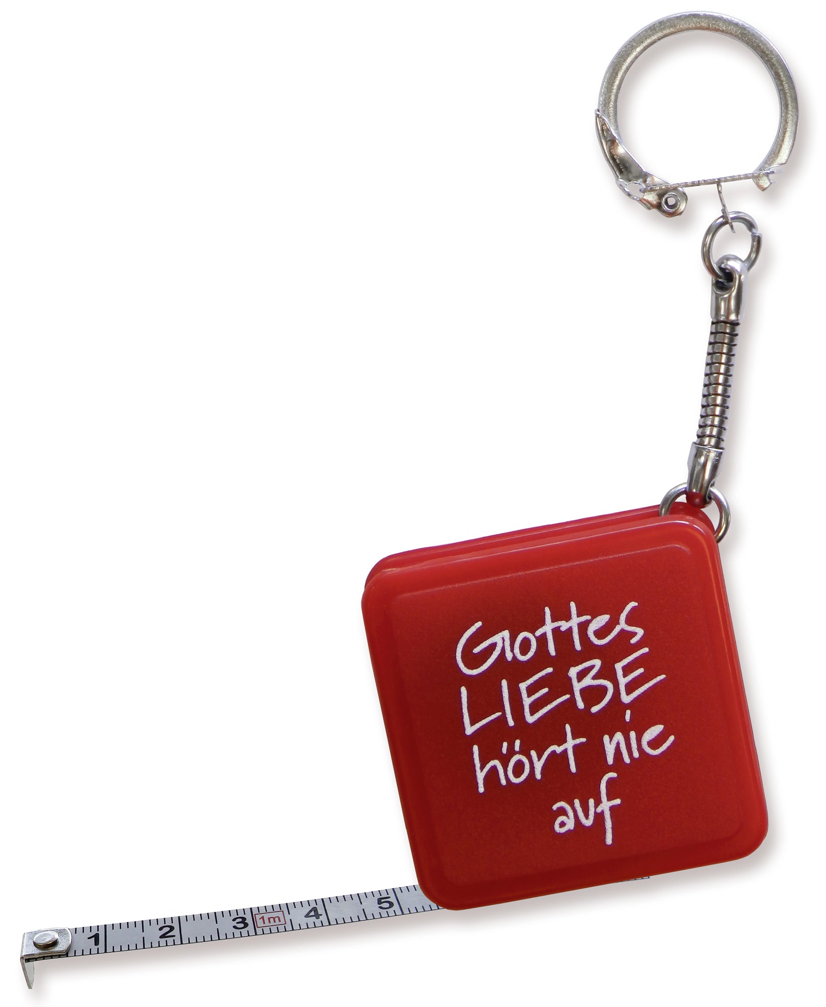 Gottes Liebe hört nie auf - Bandmaß Schlüsselanhänger (rot)