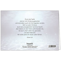 Mit dieser liebevoll gestalteten Karte zur Taufe und dem ausgewählten Bibelvers würdigen Sie den besonderen Anlass. Die gute Botschaft und die liebevolle Gestaltung unterstreichen Ihre Gratulation.