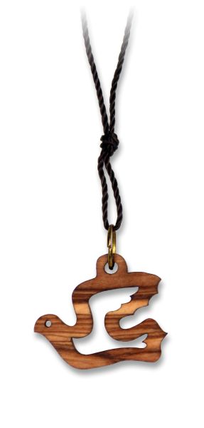Halskette mit Tauben-Anhänger (Olivenholz)