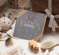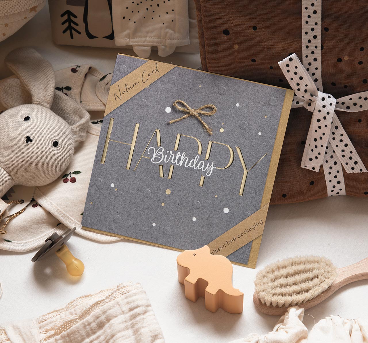 Briefumschlag und Karte werden mit einer Papierbanderole zusammengehalten.