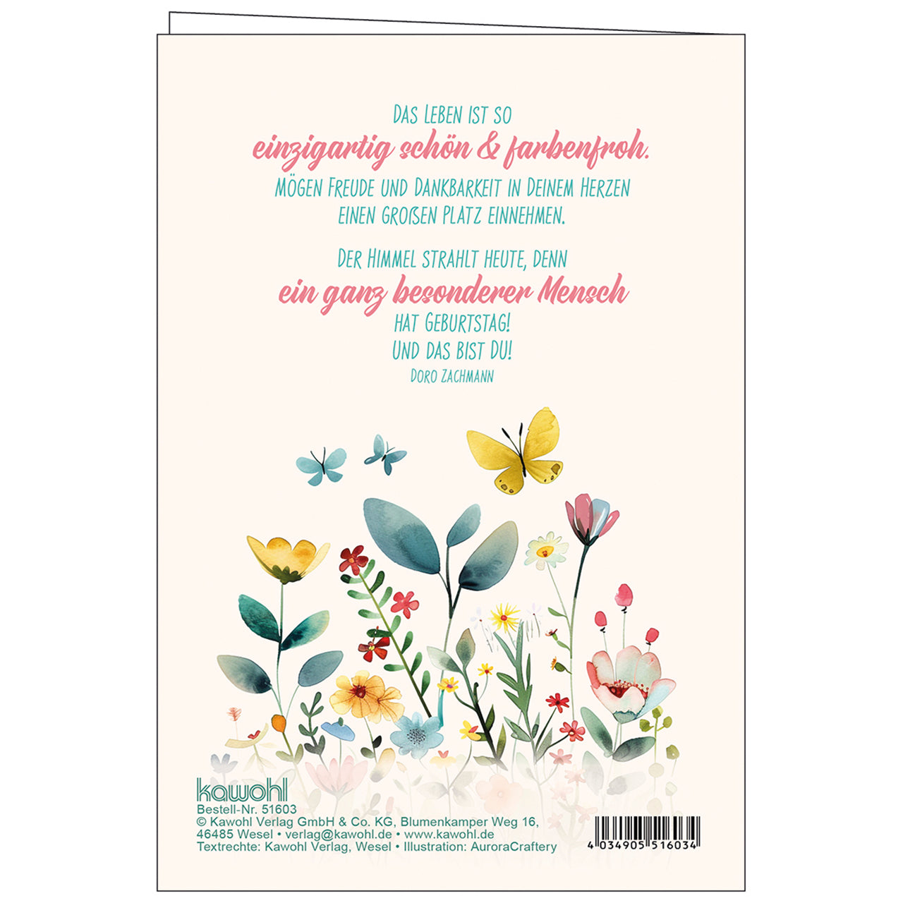 Mit dieser schönen Geburtstagskarte überreichen Sie Glückwünsche und persönliche Worte, verbunden mit einer guten Botschaft, in liebevoller Gestaltung.