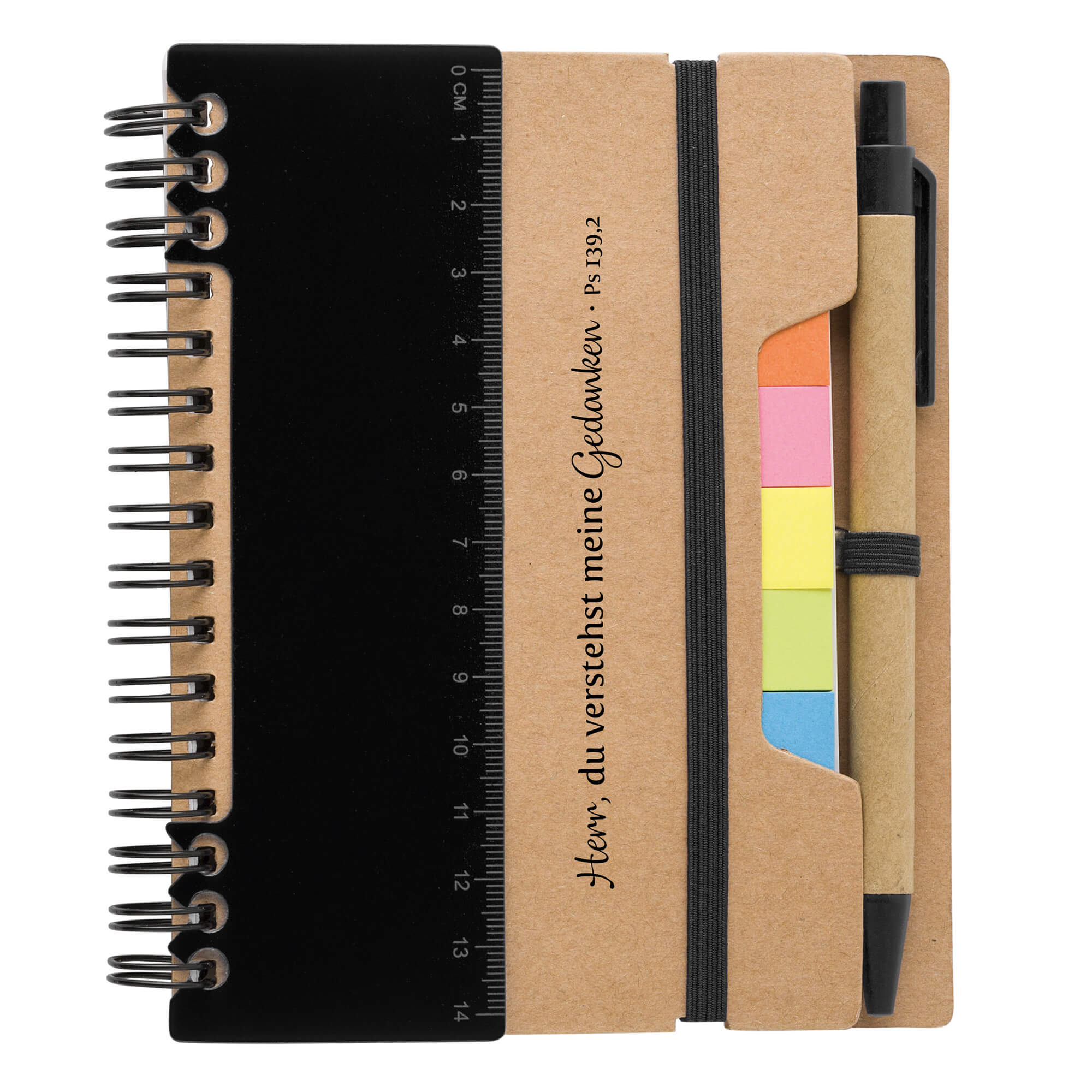 Notizbuch aus recyceltem Papier mit Aufdruck "Herr, du verstehst meine Gedanken - Ps 139,2".