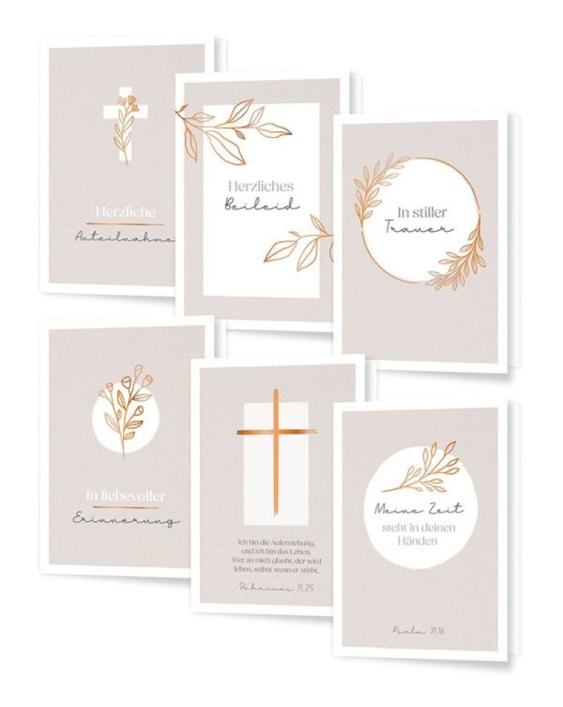 Box mit 6 Trauer-Faltkarten und Umschlägen - 6 verschiedene Motive.