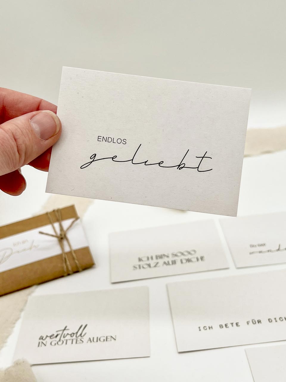 Im ganzen Alltagsstress vergisst man recht schnell die wichtigsten Botschaften. Die 10 Kärtchen sind dafür gemacht, einander zu ermutigen, zu segnen oder Trost zu spenden. Gedruckt auf schönem festem Naturpapier und hübsch verpackt im braunen Umschlag. Zum Anpinnen, Verschicken und Verschenken.
