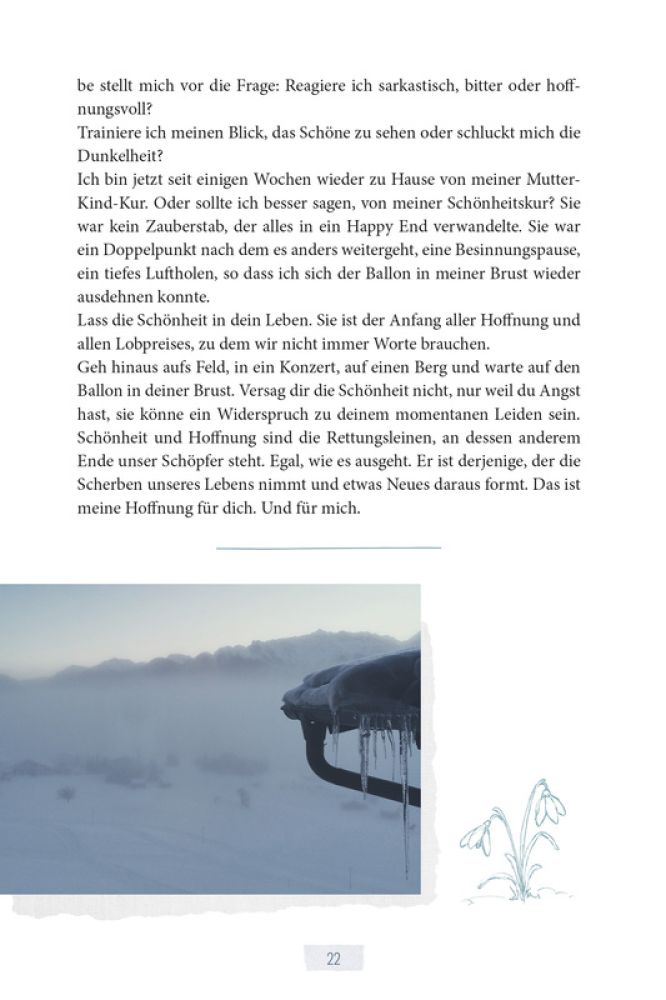 Veronika Smoor schreibt gegen den allgegenwärtigen Blues an und erzählt Geschichten, durch die Hoffnung leuchtet und die zum Hoffen anstiften, denn: "Zur Hoffnung muss du dich entschließen, du kannst sie in deinem Leben kultivieren und pflegen." Ein inspirierendes Lesebuch mit vielen Fotos.