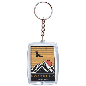 Schlüsselanhänger aus glasklarem Plexiglas, mit starker Anhängerkette.