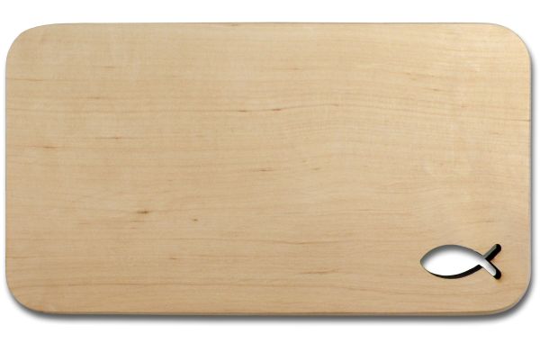 ca. 22 x 12 cm, Erle, mit ausgelasertem Fisch-Symbol