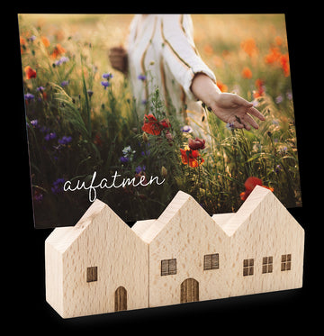 Holzhäuser mit Kartenschlitz - 3er Set (Buchenholz)