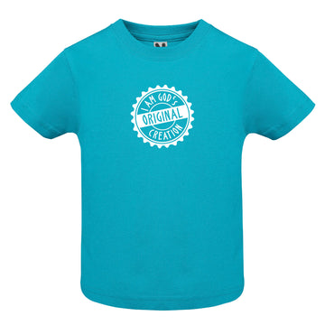 I Am God's Original Creation - Baby-Shirt (blau Gr. 68-73)