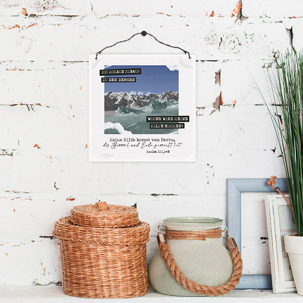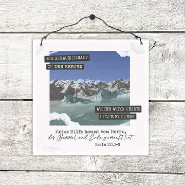 Ich schaue hinauf zu den Bergen (Holzschild)