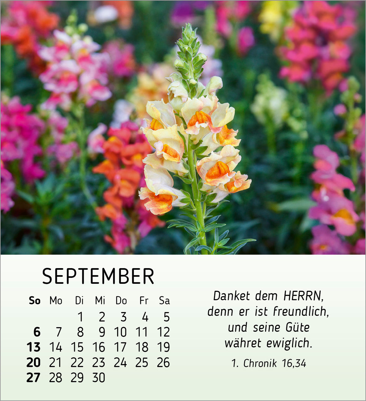 Dieser Kleinkalender widerspiegelt die faszinierende Welt der Blumen.