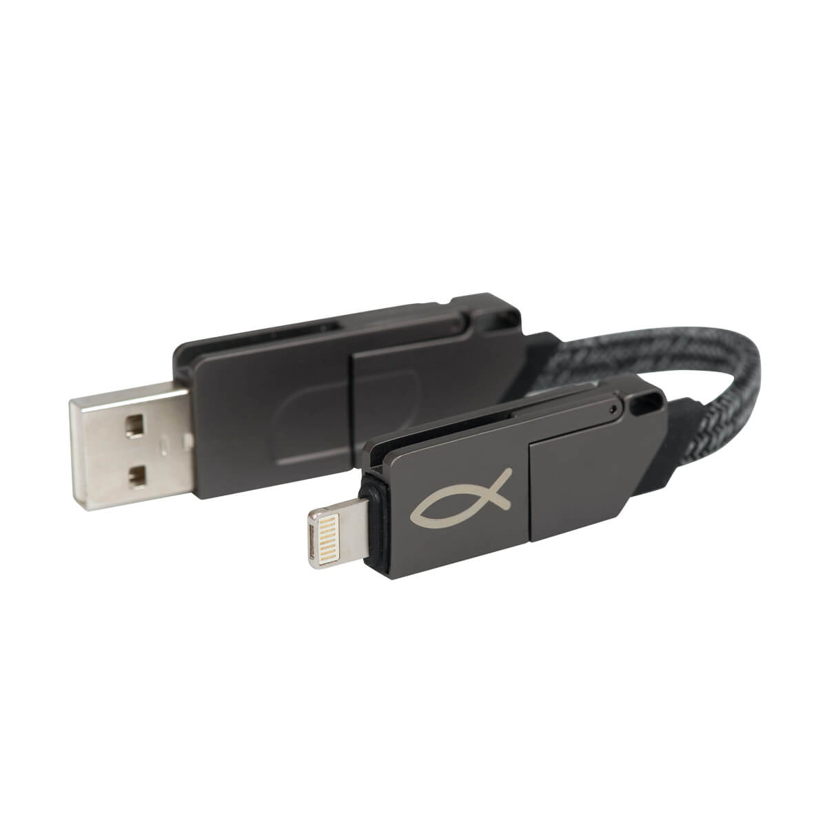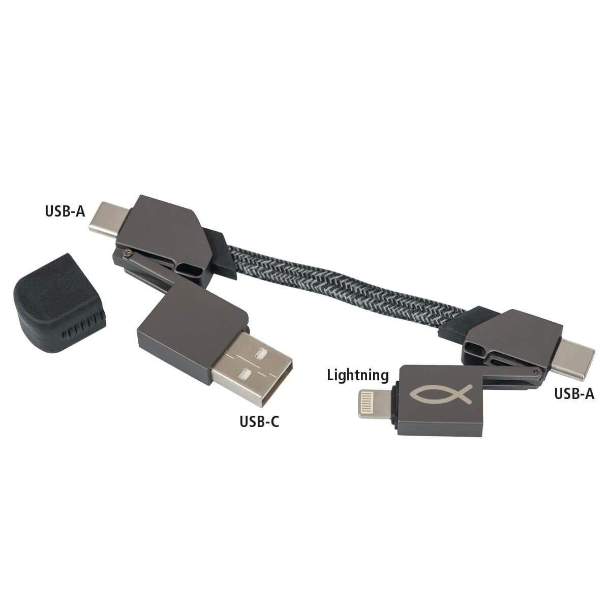 Enthält folgende Adapter: USB-A, USB-C und Lightning.