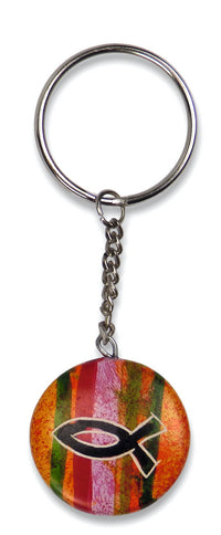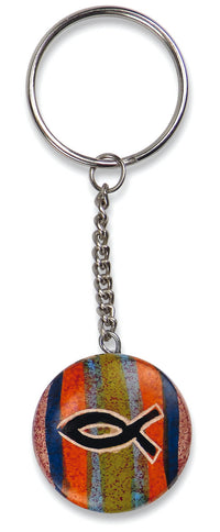 Handgefertigter Schlüsselanhänger aus Speckstein, mit Ichthys-Symbol, ca. 3 cm. Jeder Schlüsselanhänger ist ein Unikat.