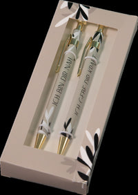 Mit diesem hübschen Set hat man immer einen Stift zur Hand, wenn man ihn braucht. Die Aufdrucke "Ich gebe dir Kraft" und "Ich bin dir nah" erinnern mitten im Alltag an Gottes Gegenwart.