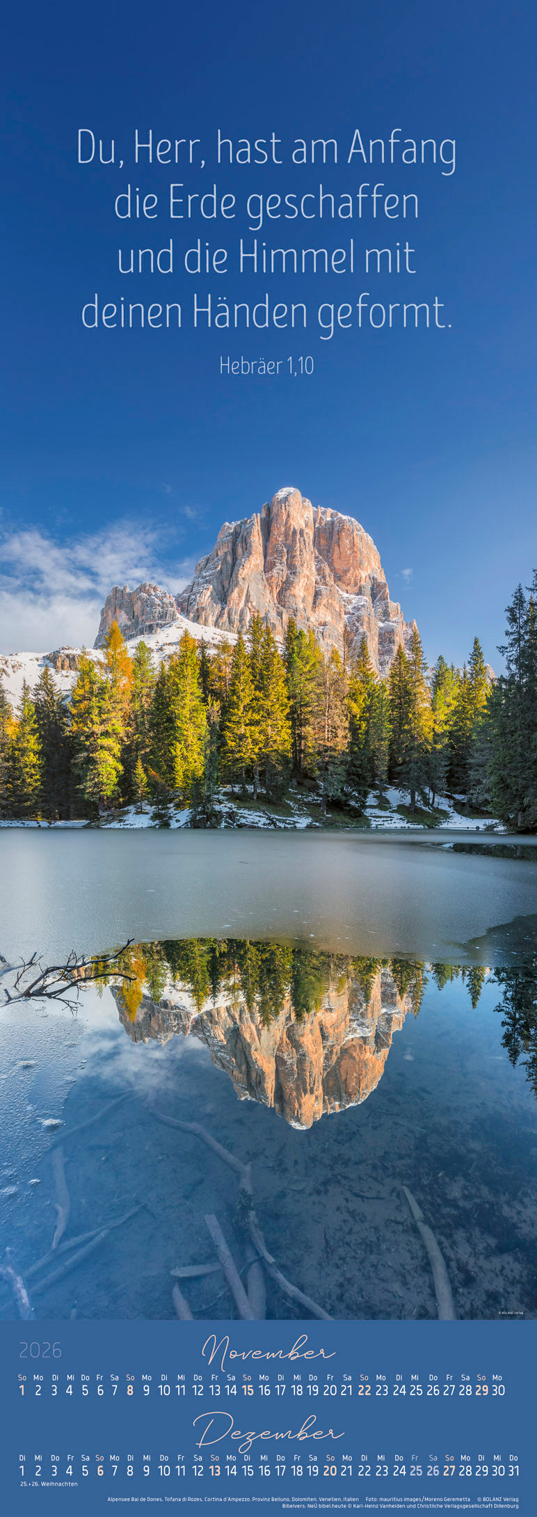 Manchmal muss großartige Landschaft einfach großformatig dargestellt werden. Wunderschöne Motive, faszinierend fotografiert, laden Sie zum Träumen ein. Und passend dazu ausgewählte Bibelverse geben dem Ganzen eine besondere Note.