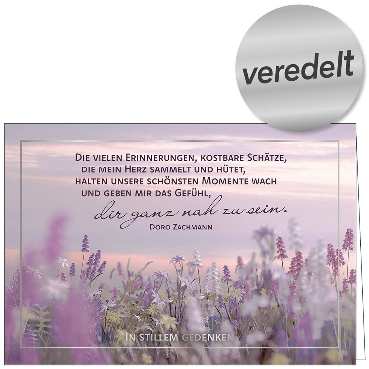 Trauerfaltkarte mit einer Silber-Veredelung und Umschlag. Hergestellt in Deutschland.