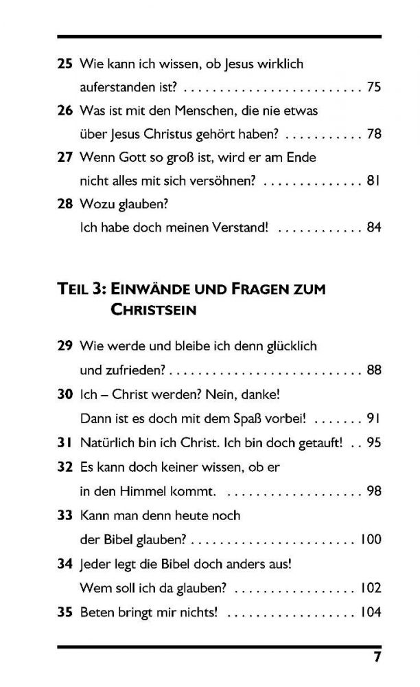 Oft sind es Fragen und Zweifel, die Menschen davon abhalten, sich auf den Glauben an Jesus Christus einzulassen. Der Autor gibt hier gut verständliche Antworten zu verschiedensten Einwänden, die dem Suchenden auf dem Weg zu Gott Schwierigkeiten bereiten.