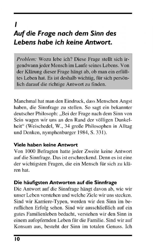 Unter jedem neuen Kapitel erscheint ein grauer Kasten mit einer Frage drin, Buchempfehlungen, 5-Schritte zum neuen Leben
