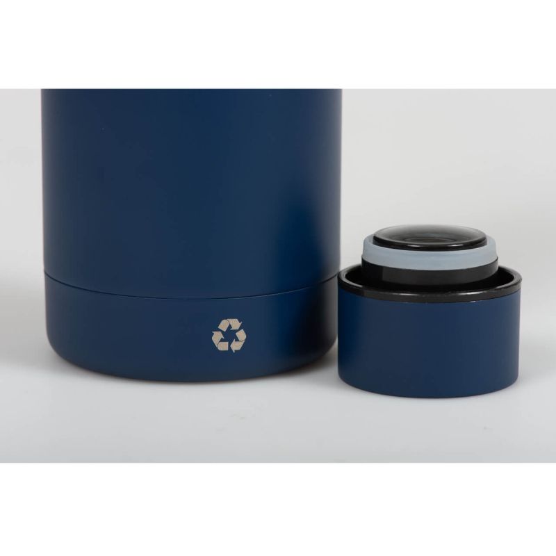 Stylische Trinkflasche für unterwegs aus recyceltem doppelwandigen Edelstahl, Füllmenge 500 ml.