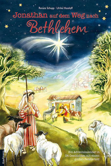 Der Hirtenjunge Jonathan macht sich aus den Bergen Galiläas nach Bethlehem auf, um dort das Wunder der Weihnacht zu entdecken. Auf seiner abenteuerlichen Reise begegnet er Handwerkern, Bauern, Händlern, Fischern Täglich wird vom wunderschön illustrierten Fensterbild eine Folie abgelöst und so eine neue Etappe der Reise des kleinen Hirten sichtbar.