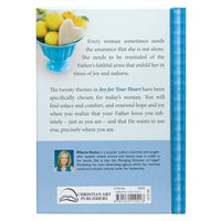 Find comfort and hope in Milanie Vosloo's uplifting devotional, Joy For Your Heart. Everything about this little treasure soothes the soul and body. padded cover, tranquil color choices, crisp images of homey artifacts and inspiring words artfully expressed in an array of lovely scripts and typefaces. 20 mini-chapters speak to the concerns of today's woman, reminding her that she is not alone, that God's faithful arms enfold her in times of joy and in sadness, that God loves her just as she is and that He wants to use her precisely where she is. Filled with reassuring messages of love and renewal every woman yearns to hear!