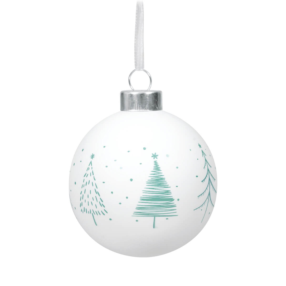 Christbaumkugel aus Glas, rundum bedruckt mit weihnachtlichem Motiv und dem Text: