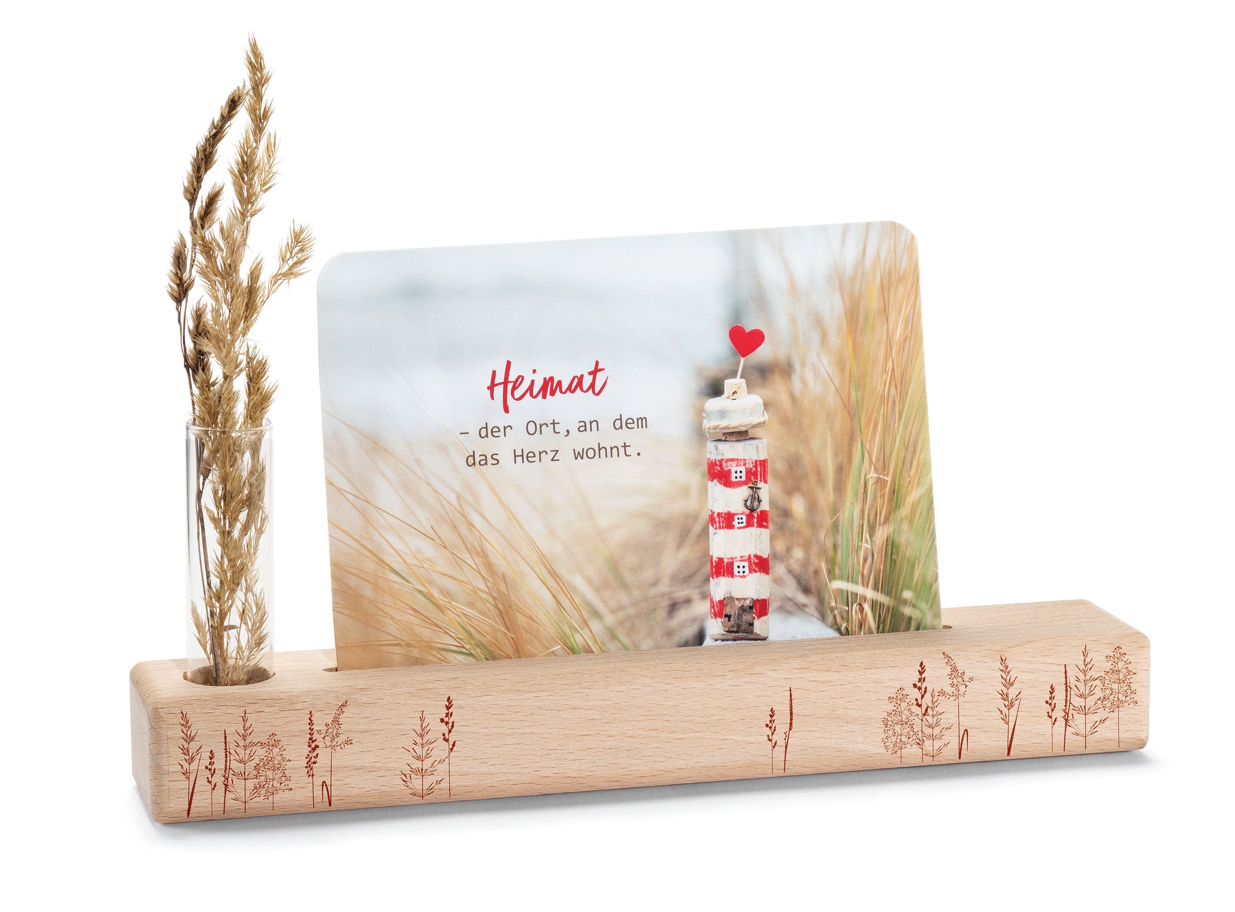 Kartenhalter mit Reagenzglas-Vase (Buchenholz)