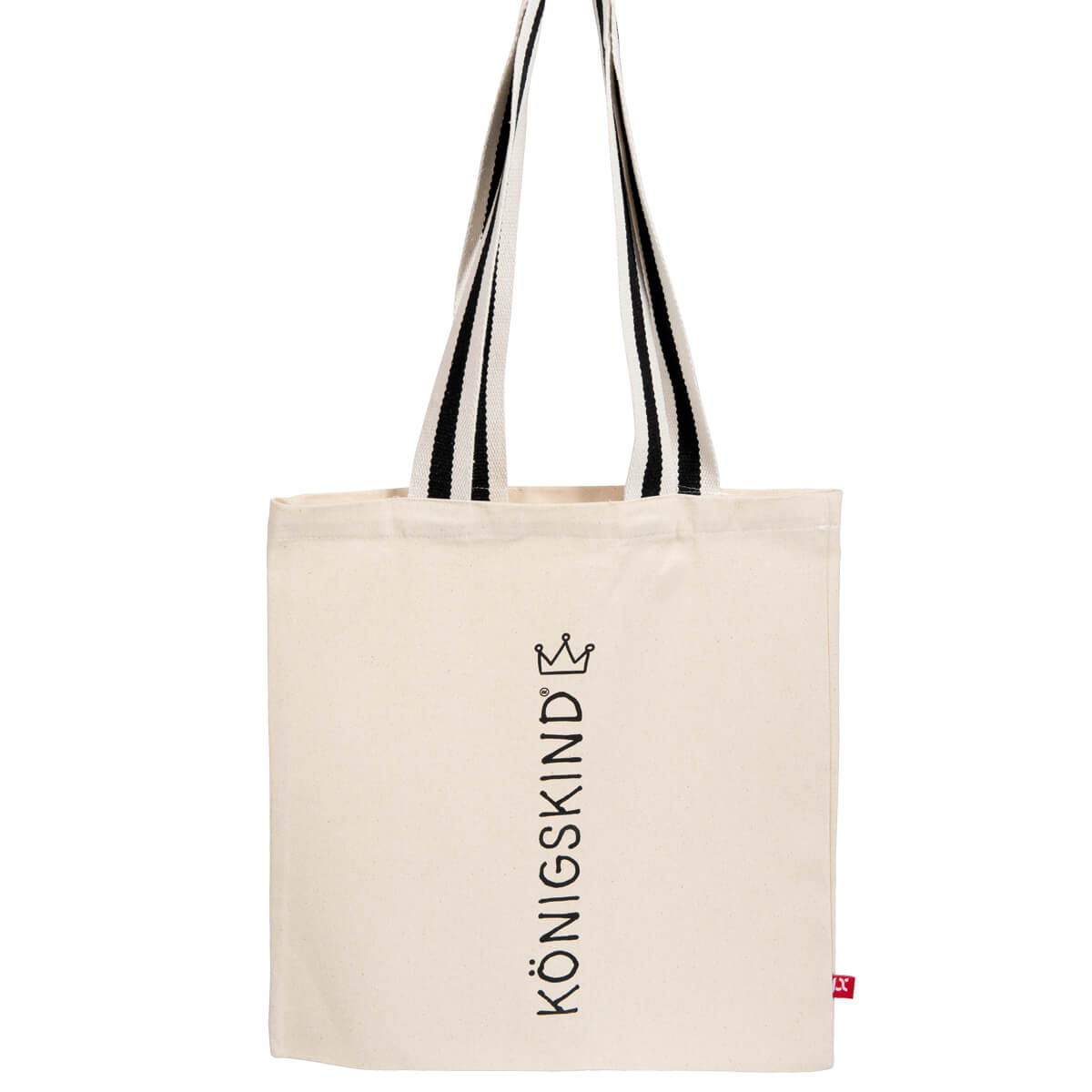 Die Tragetasche aus Bio-Baumwolle mit Aufdruck Königskind und Krone ist sehr robust für Einkauf, Sport und Freizeit.