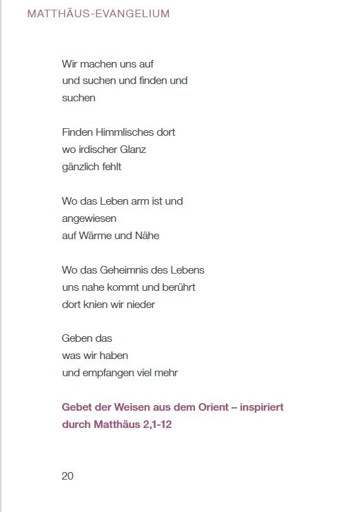 Nicht als Ersatz, sondern als Ergänzung nehmen sie die Dynamik der biblischen Worte und Geschichten auf und sind aus dem Lebensgefühl unserer Zeit so reformuliert, dass sie die Emotionen, aber auch die geistliche Sehnsucht nach Orientierung und Ermutigung ansprechen.