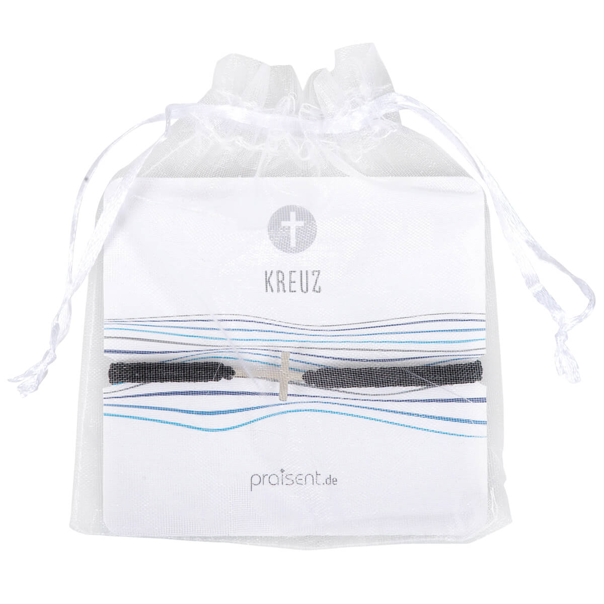 Dekorativ auf Trägerkarte im Organzabeutel verpackt.
